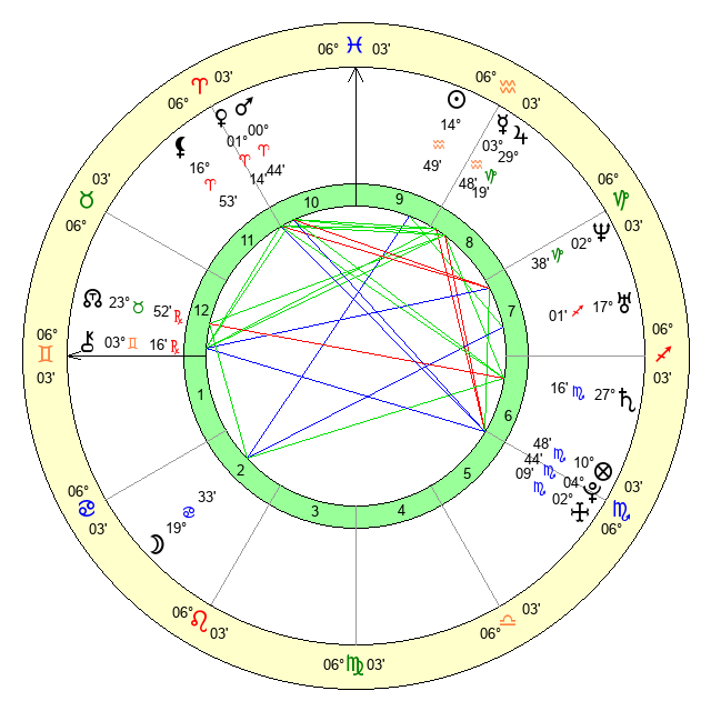 | Venus | 1 Aries 14 | 29 Pisces 32 | 22 Aries 13 |
