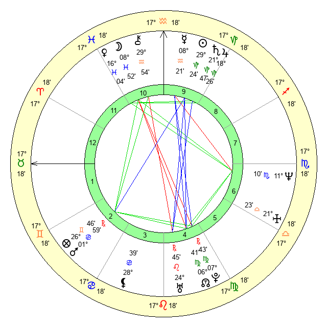 | Moon | 8 Pisces 43 | 6 Libra 37 | 10 Cancer 21 |