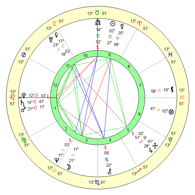 | Pluto | 12 Leo 32 | 3 Aquarius 46 | 13 Leo 42 |