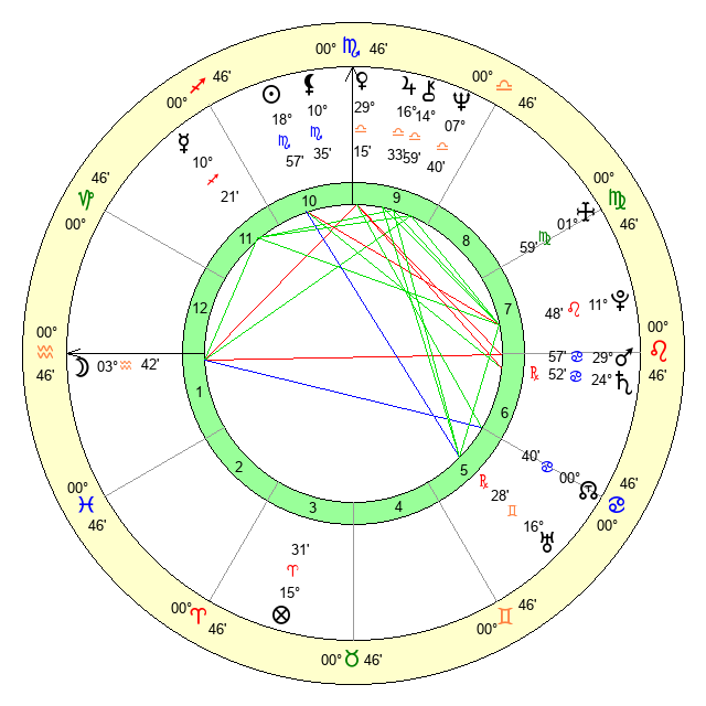 | Moon | 3 Aquarius 42 | 13 Leo 9 | 10 Capricorn 41 |