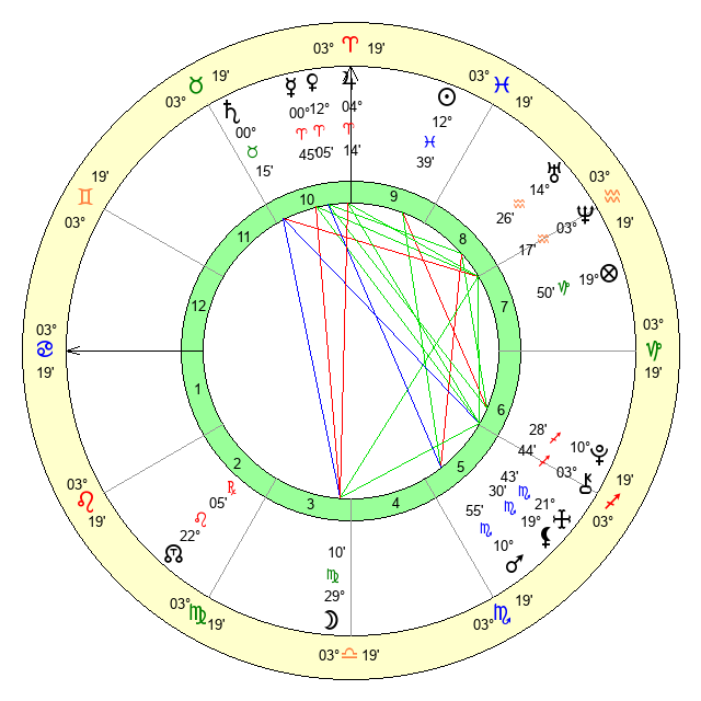 | Mars | 10 Scorpio 54 | 17 Cancer 22 | 11 Scorpio 24 |
