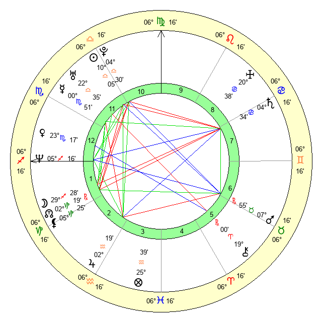| Venus | 23 Scorpio 17 | 17 Virgo 6 | 18 Capricorn 40 |