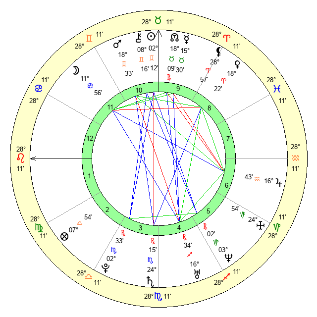 | Saturn | 24 Scorpio 34 | 29 Pisces 46 | 22 Scorpio 13 |