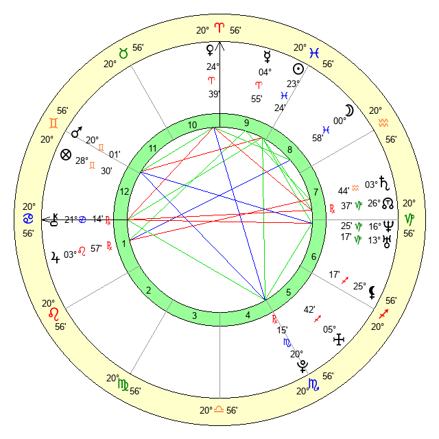 | Moon | 0 Pisces 57 | 26 Virgo 21 | 3 Gemini 12 |
