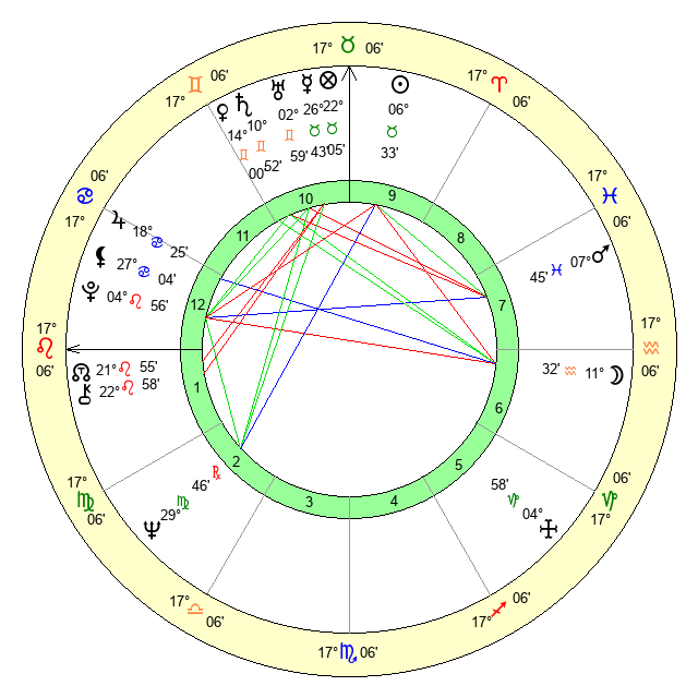 | Moon | 11 Aquarius 33 | 6 Taurus 15 | 12 Aquarius 4 |