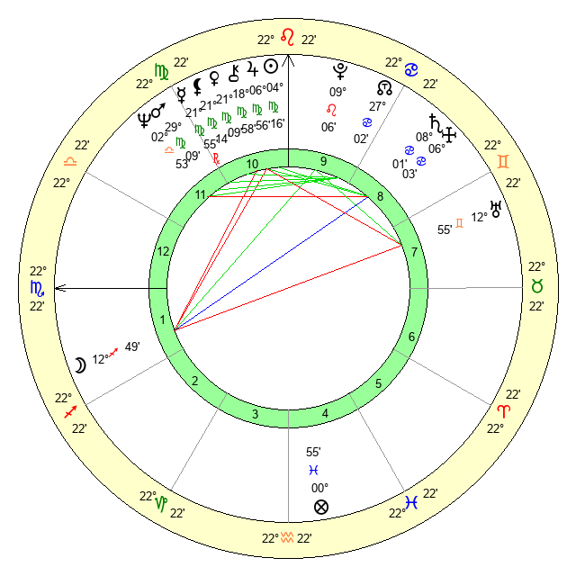 | Mercury | 21 Virgo 55 | 19 Leo 21 | 9 Sagittarius 21 |