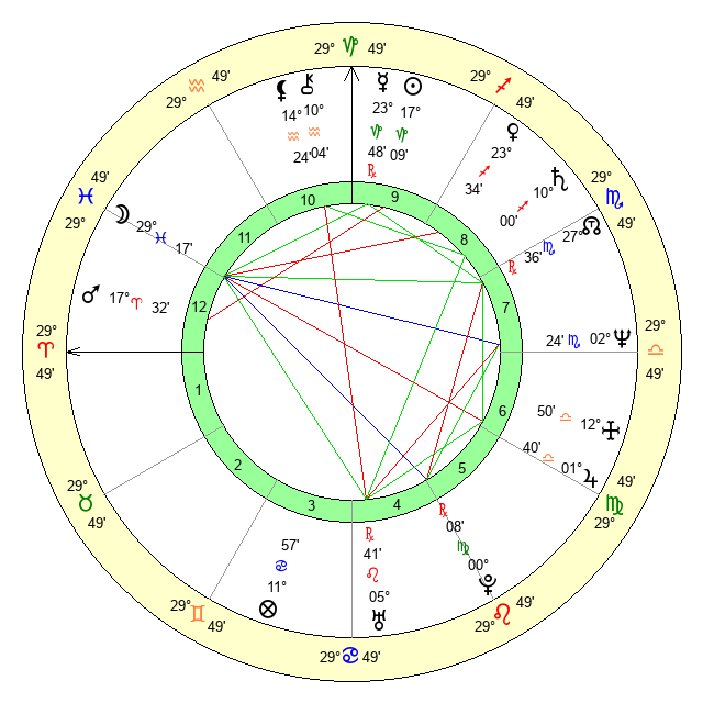 | Moon | 0 Aries -41 | 13 Virgo 17 | 19 Libra 2 |