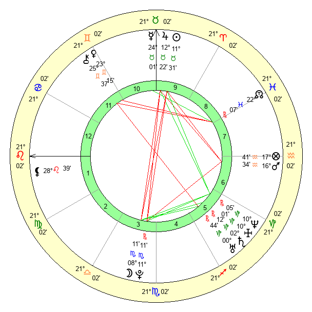 | Mars | 16 Aquarius 34 | 5 Leo 55 | 10 Pisces 14 |
