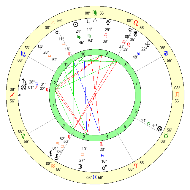 | Moon | 27 Aquarius 14 | 6 Leo 20 | 11 Virgo 53 |