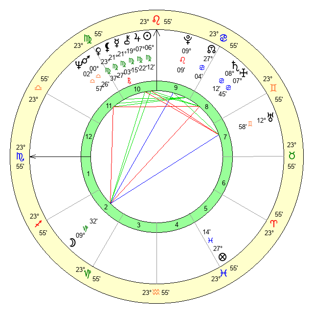 | Venus | 23 Virgo 38 | 4 Leo 48 | 2 Capricorn 55 |