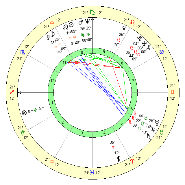 | Mars | 28 Virgo 9 | 7 Scorpio 2 | 23 Scorpio 53 |