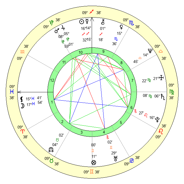 | Saturn | 6 Virgo 38 | 25 Pisces 10 | 3 Virgo 11 |