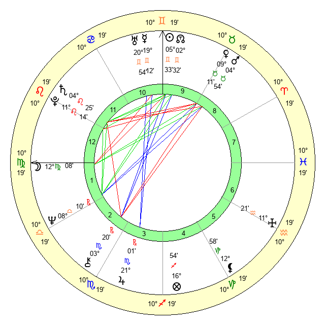 | Moon | 12 Virgo 16 | 14 Gemini 53 | 11 Cancer 10 |