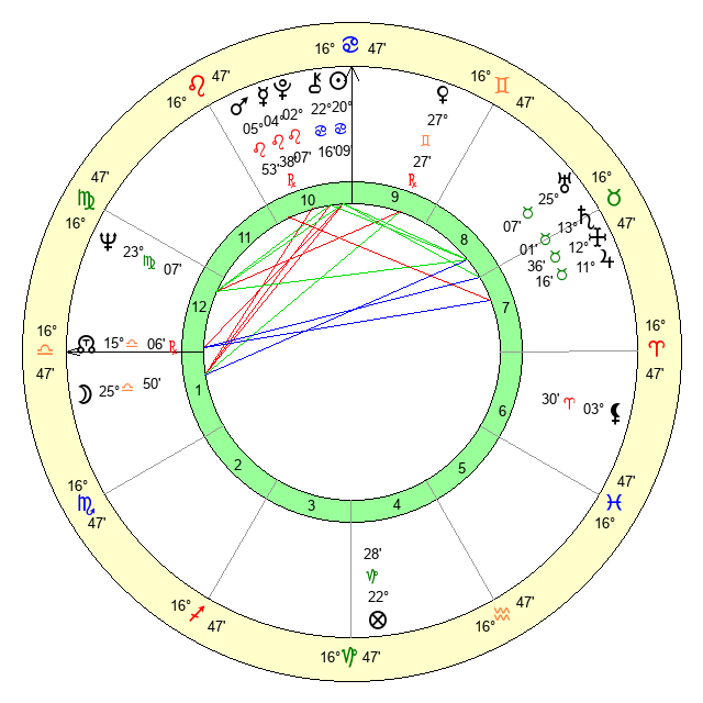 | Sun | 20 Cancer 9 | 20 Cancer 36 | 12 Libra 18 |