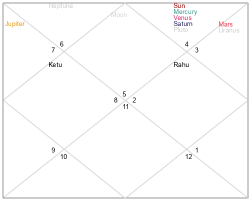 | Ketu | 28 Scorpio 5 | 19 Virgo 26 | 23 Scorpio 57 |