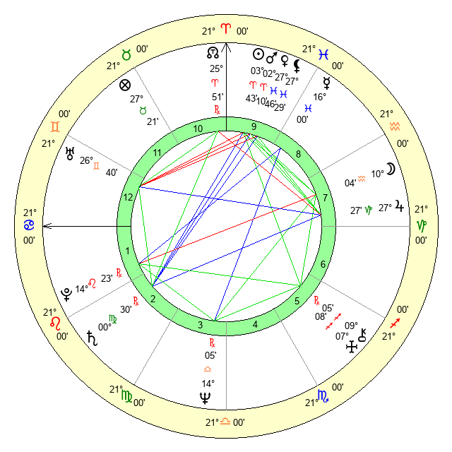| Jupiter | 27 Capricorn 22 | 14 Gemini 54 | 1 Aquarius 29 |