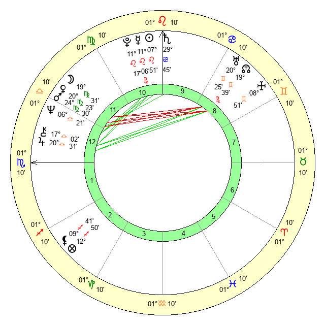 | Mercury | 11 Leo 7 | 9 Leo 12 | 15 Scorpio 34 |