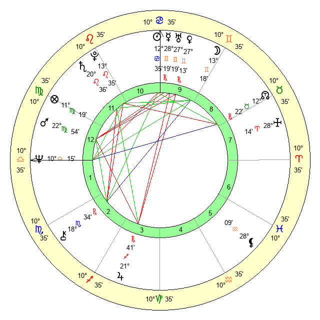 | Moon | 13 Gemini 17 | 3 Scorpio 40 | 11 Aries 3 |