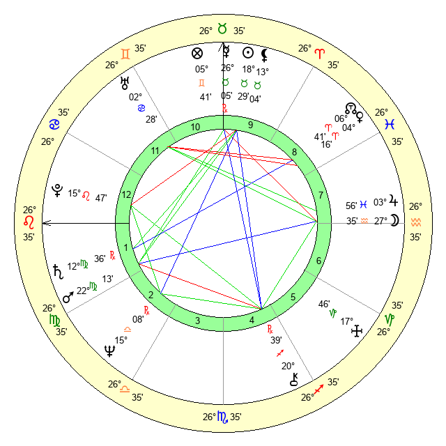| Saturn | 13 Virgo 9 | 28 Pisces 36 | 16 Virgo 50 |