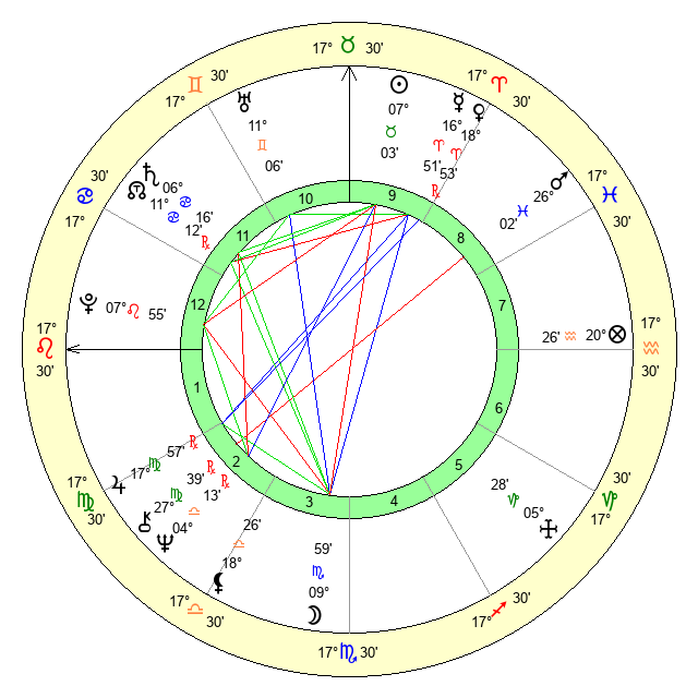 | Moon | 10 Scorpio 1 | 6 Taurus 15 | 17 Libra 28 |