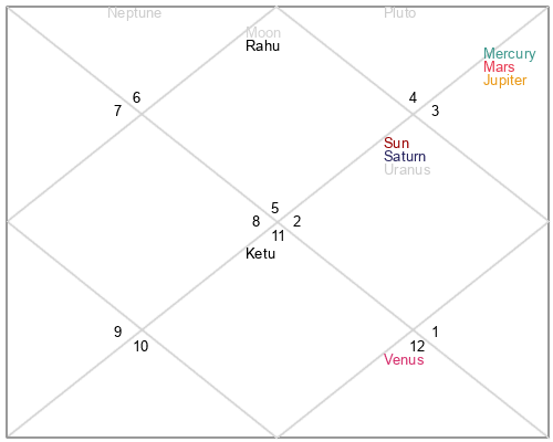| Rahu | 9 Virgo 14 | 23 Pisces 53 | 4 Virgo 50 |