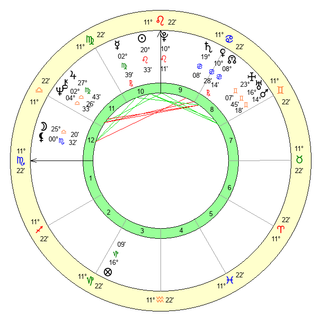 | Sun | 20 Leo 33 | 21 Leo 12 | 8 Scorpio 55 |