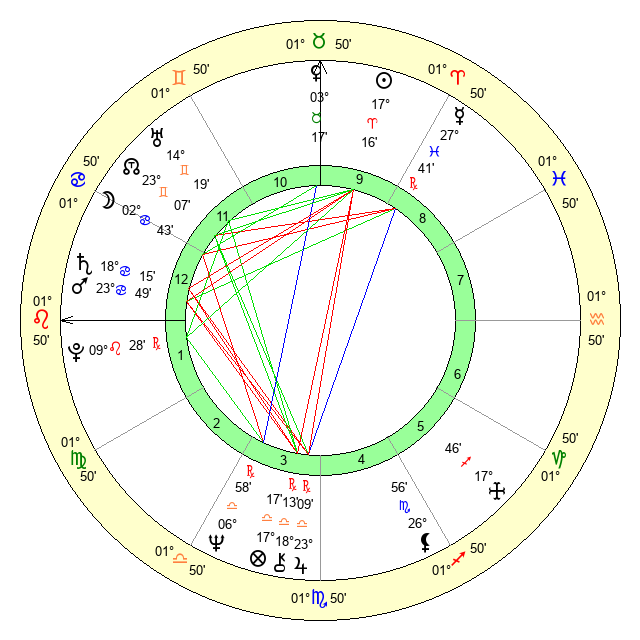 | Pluto | 9 Leo 28 | 3 Aquarius 38 | 10 Leo 17 |