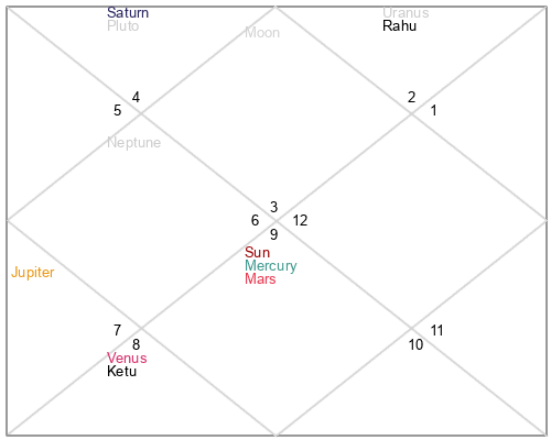 | Ketu | 9 Sagittarius 50 | 11 Virgo 51 | 5 Sagittarius 39 |