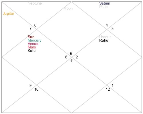 | Ketu | 12 Sagittarius 32 | 14 Virgo 33 | 8 Sagittarius 21 |
