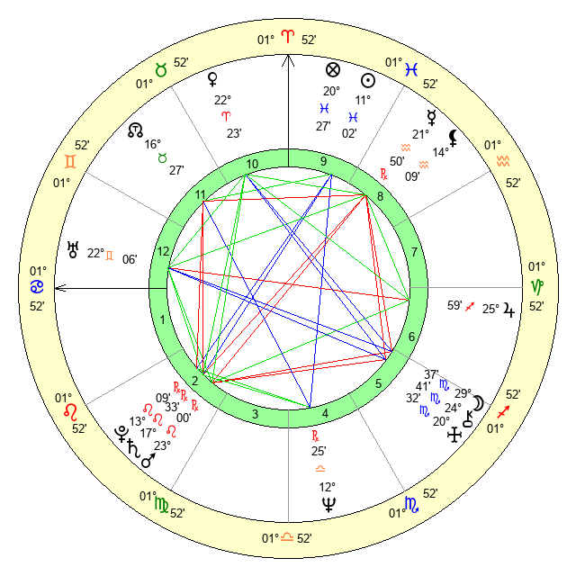 | Venus | 22 Aries 23 | 10 Aries 50 | 6 Cancer 32 |