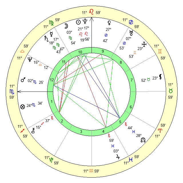 | Saturn | 19 Virgo 12 | 0 Aries 57 | 28 Virgo 14 |