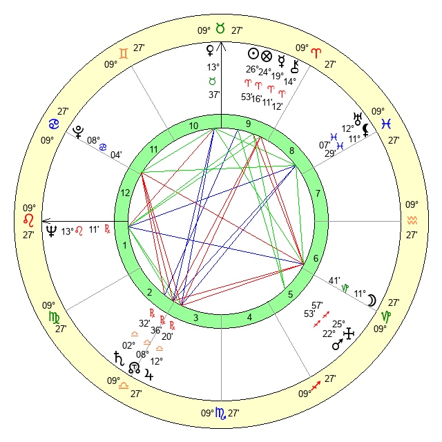 | Sun | 26 Aries 53 | 27 Aries 56 | 5 Leo 46 |