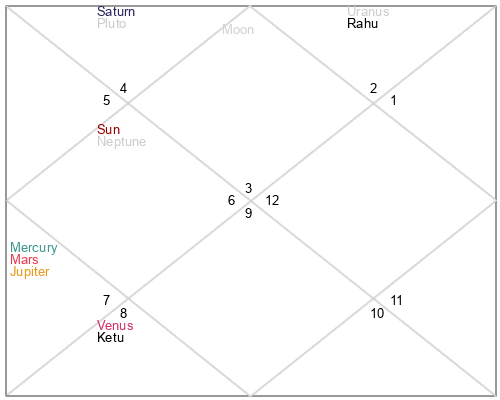 | Ketu | 14 Sagittarius 14 | 16 Virgo 15 | 10 Sagittarius 3 |
