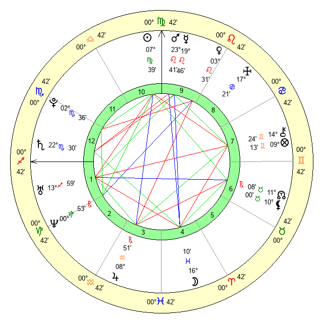 Mars | 23 Leo 42 | 15 Libra 21 | 19 Virgo 0 |
