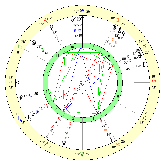 | Mars | 23 Cancer 13 | 15 Virgo 49 | 18 Leo 58 |