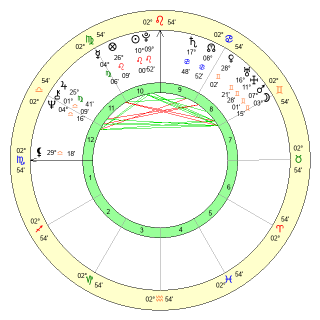 | Pluto | 9 Leo 52 | 2 Aquarius 22 | 11 Leo 41 |