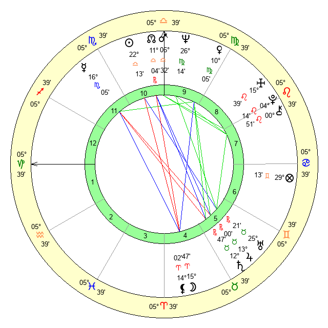 | Venus | 10 Virgo 6 | 2 Libra 19 | 23 Sagittarius 35 |