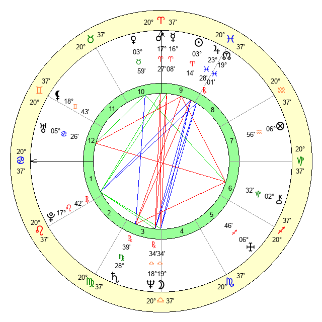 | Mars | 17 Aries 27 | 21 Cancer 23 | 11 Gemini 17 |