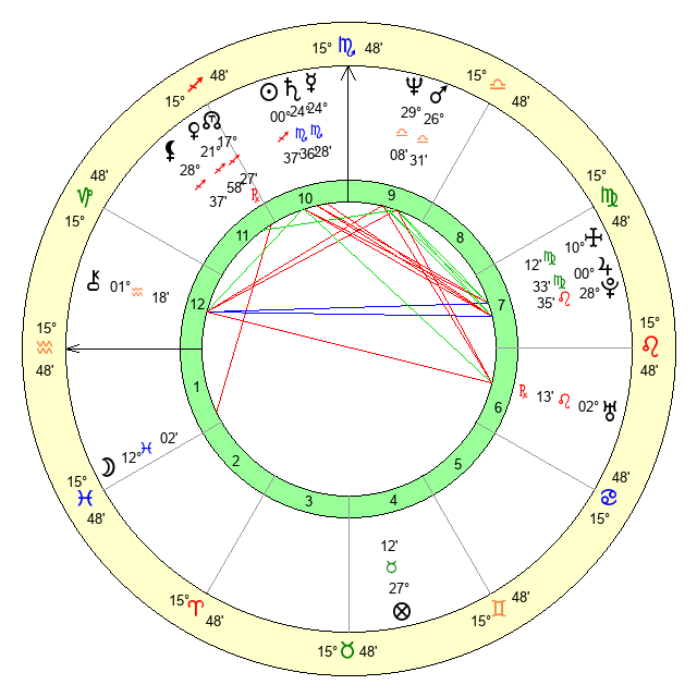 | Moon | 12 Pisces 0 | 9 Capricorn 9 | 18 Libra 59 |