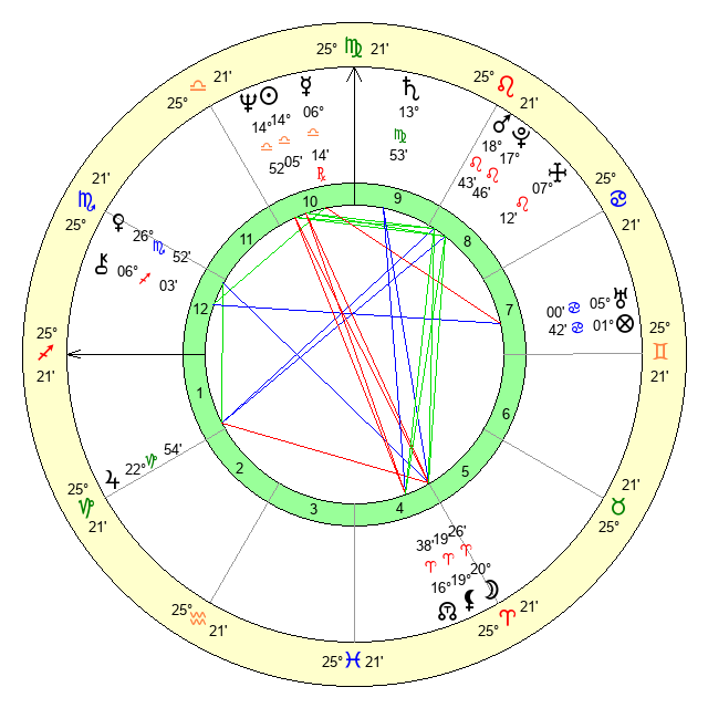 | Saturn | 14 Virgo 21 | 27 Pisces 9 | 19 Virgo 53 |