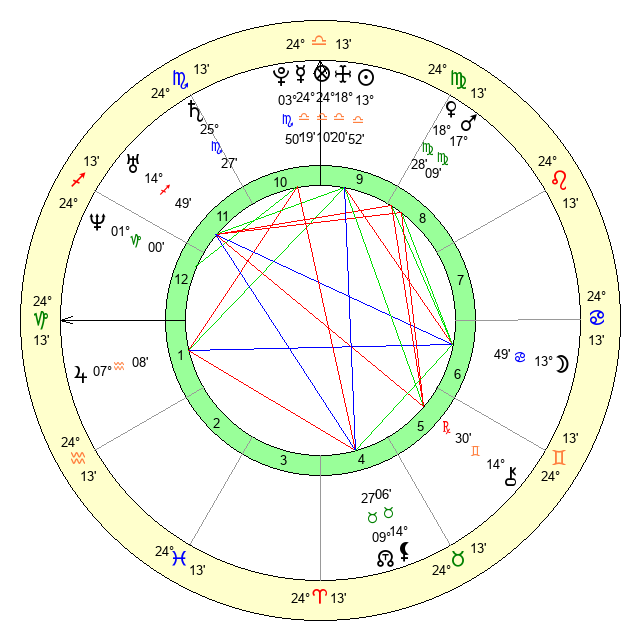 | Mars | 17 Virgo 10 | 10 Scorpio 7 | 12 Libra 15 |