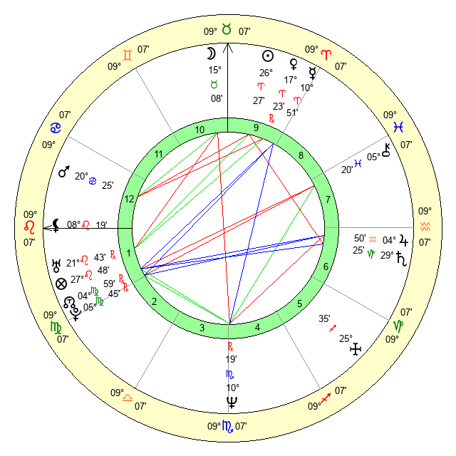 | Venus | 17 Aries 23 | 24 Pisces 54 | 12 Taurus 27 |