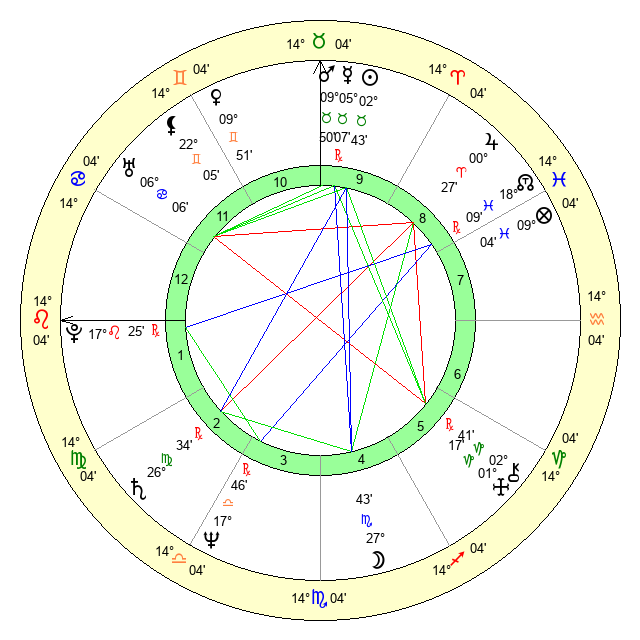 | Neptune | 17 Libra 45 | 0 Aries 51 | 16 Libra 46 |
