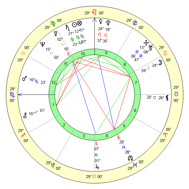 | Saturn | 21 Virgo 51 | 29 Pisces 34 | 0 Libra 24 |