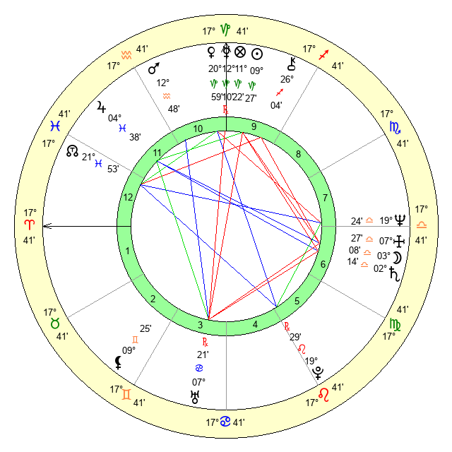 | Saturn | 2 Libra 45 | 26 Pisces 3 | 29 Virgo 52 |