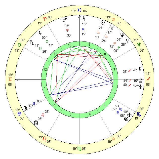 | Sun | 27 Aquarius 20 | 28 Aquarius 16 | 22 Pisces 26 |