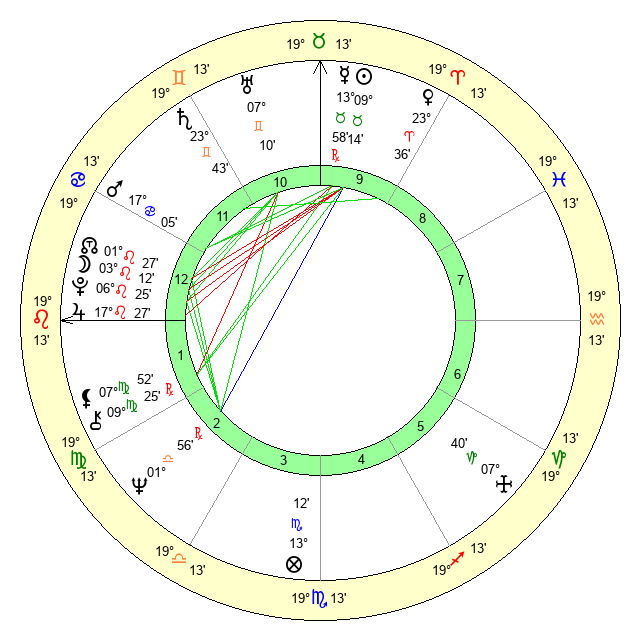 | Moon | 3 Leo 14 | 6 Gemini 33 | 20 Cancer 38 |