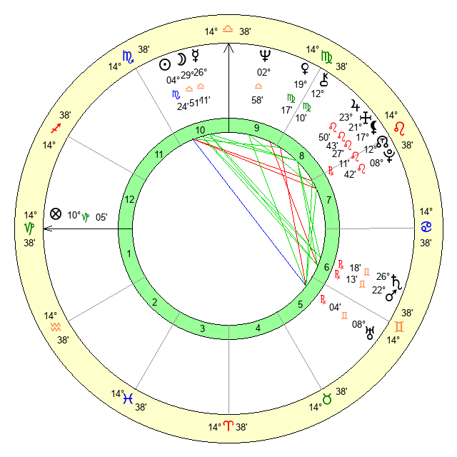 | Neptune | 3 Libra 0 | 29 Pisces 51 | 4 Libra 13 |