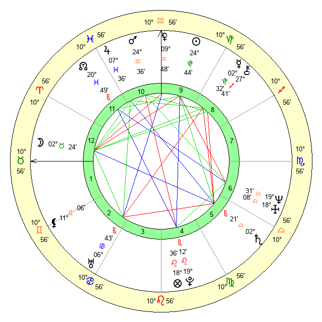 | Moon | 2 Taurus 25 | 20 Sagittarius 30 | 29 Capricorn 25 |