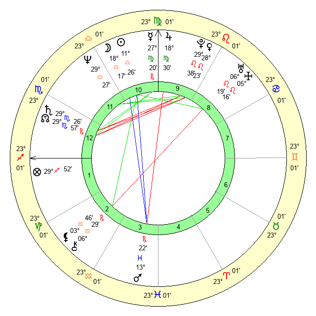| Venus | 28 Leo 23 | 18 Virgo 38 | 21 Scorpio 12 |
